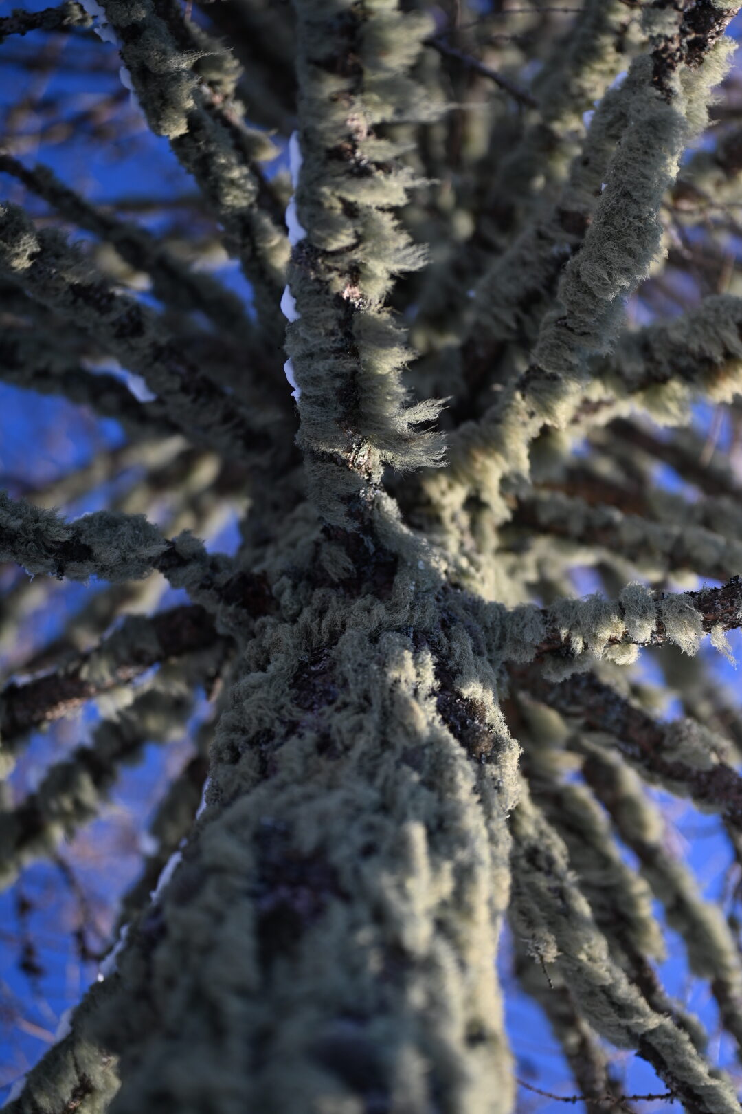 Arbre parsemé de lichen un jour de beau temps