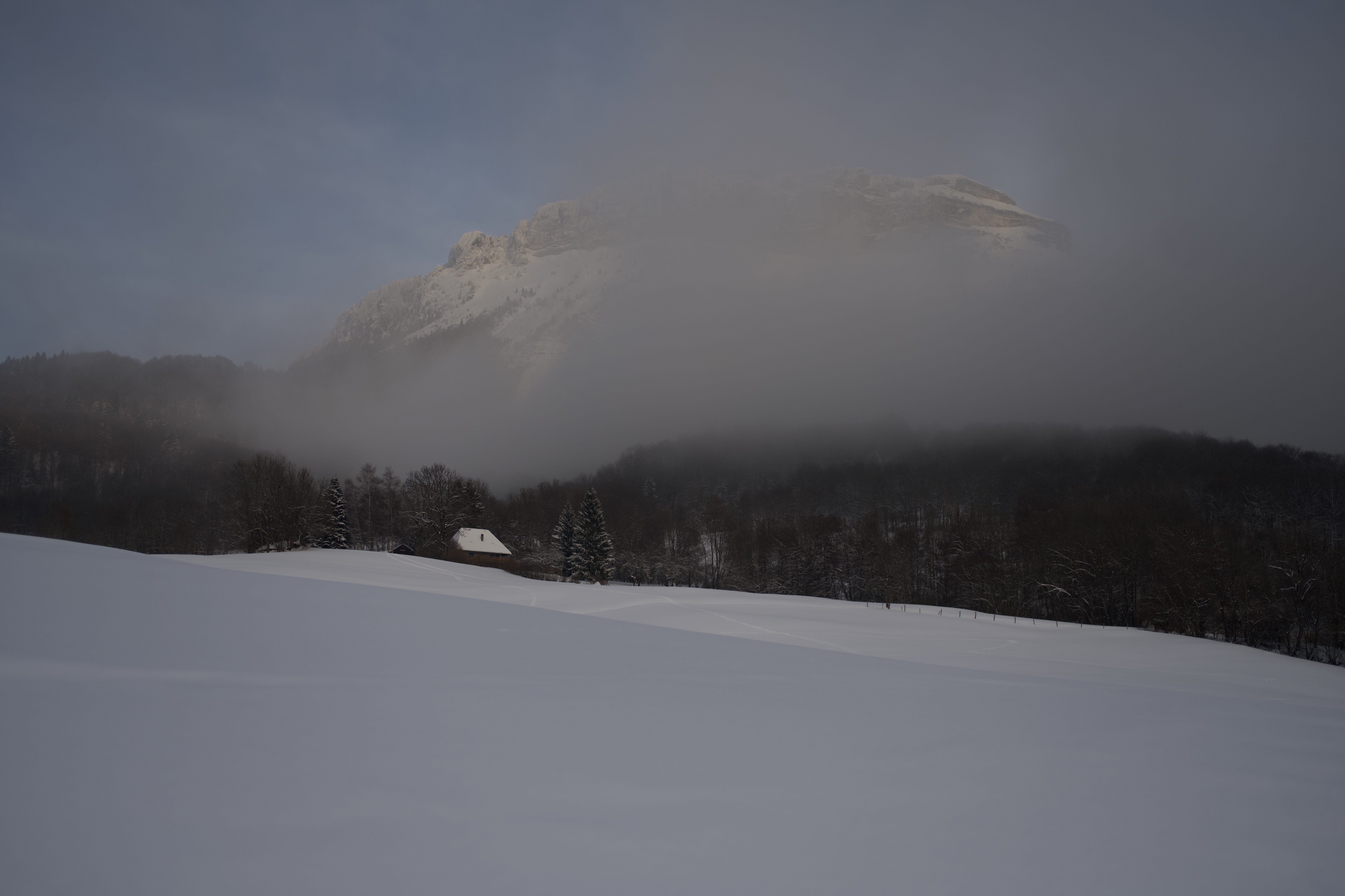 Maison au pied du Margériaz embrumé