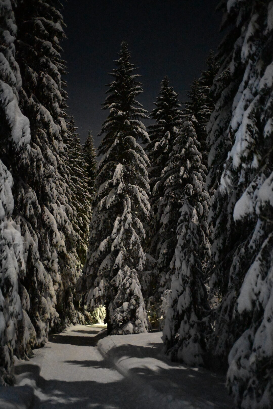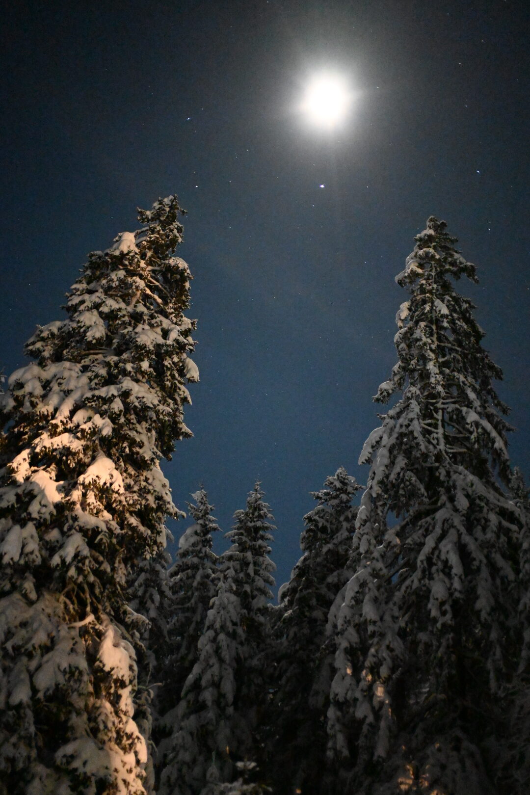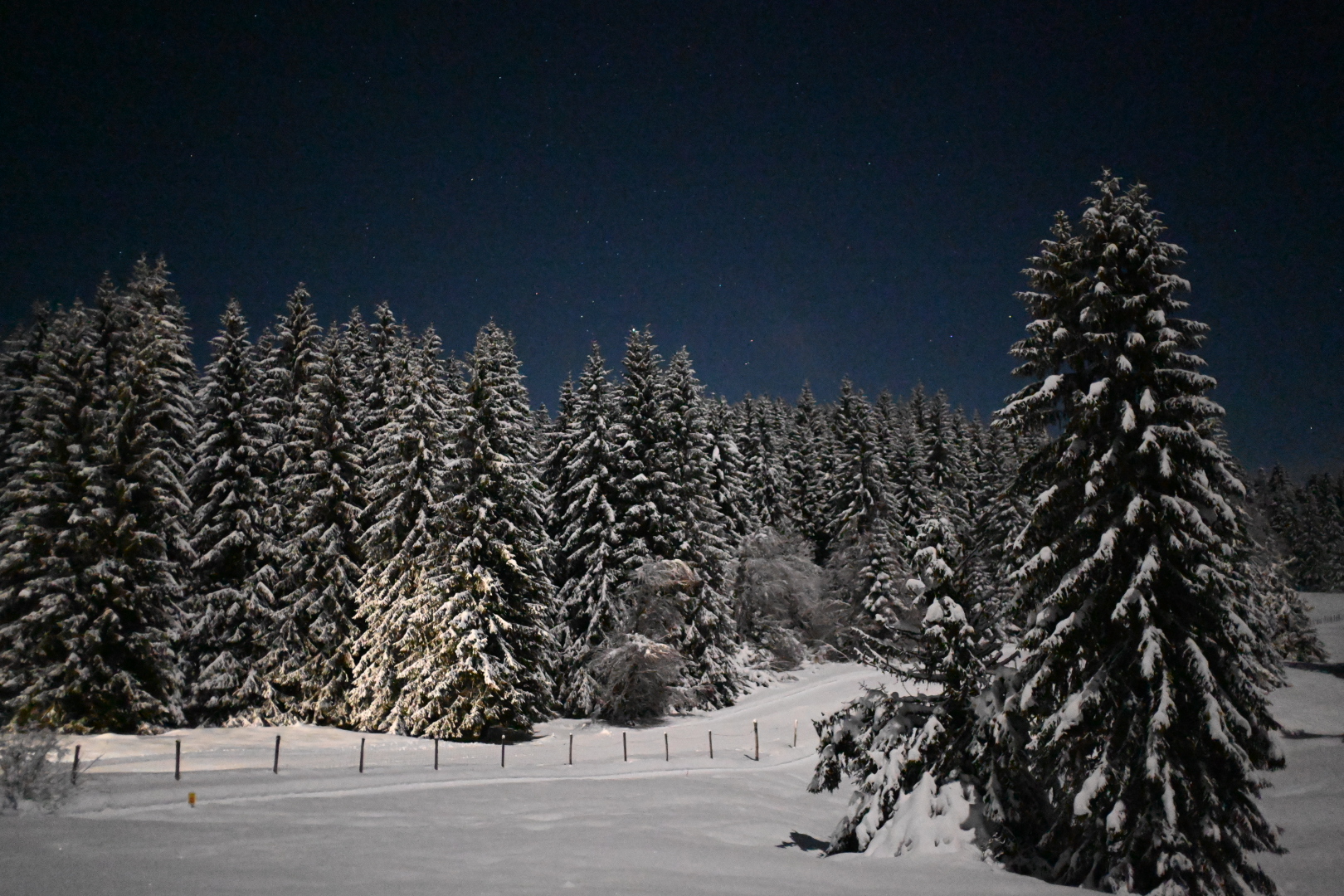 Claire de lune sur sapins plâtrés